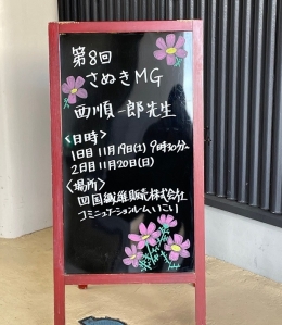 2022年11月19日(土)20日(日)の2日間、四国繊維販売株式会社様(https://shikokuseni.co.jp/)「コミュニケーションルームいこい」にて西順一郎先生をお招きし、第8回さぬきMGを開催しました。2日目には香川大学経済学部の藤村和宏教授(藤村研究室:https://mkresearch.ec.kagawa-u.ac.jp/infos/top.php)にもお越しいただき、講義をしていただきました。